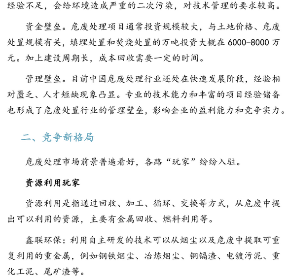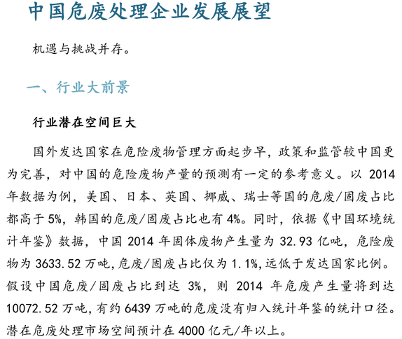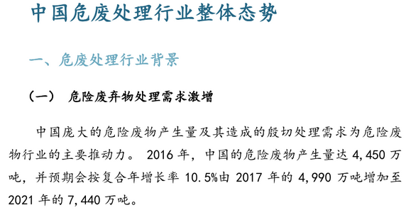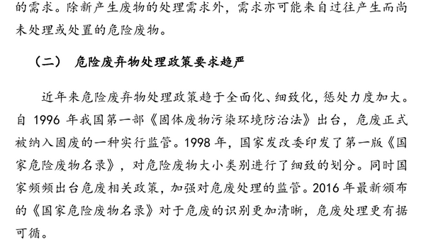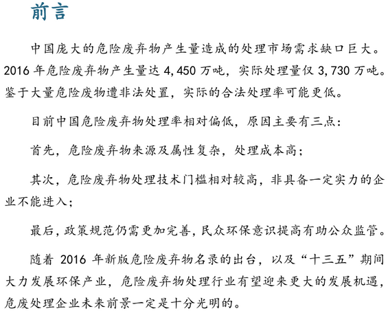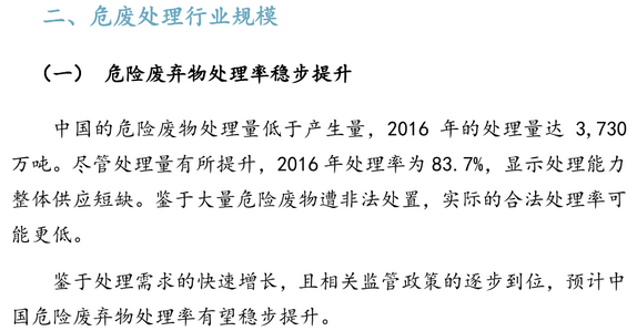 废弃物名录的出台,以及“十三五”期间大力发展环保产业,危险废弃物处理行业有望迎来更大的发展机遇,危废处理企业未来前景明朗。