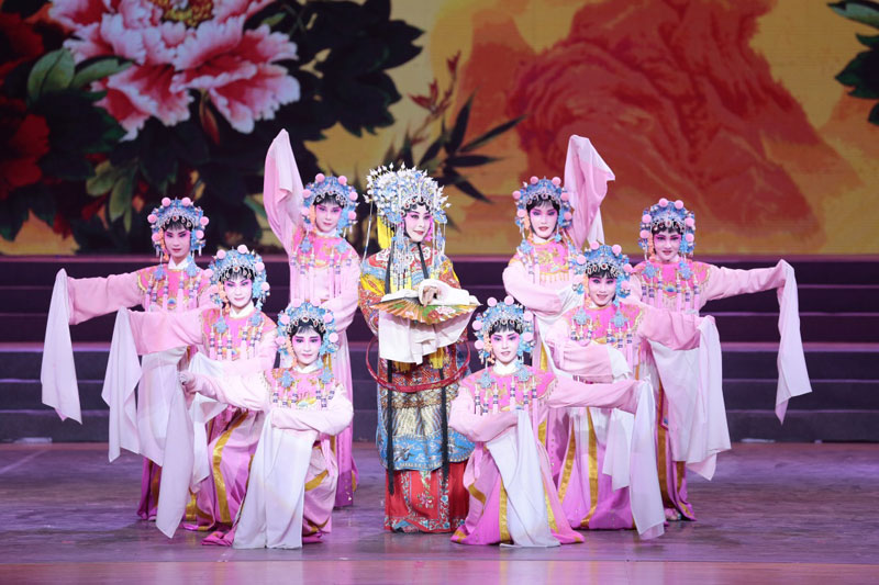 5月8日,安徽艺术职业学院的学生在表演徽剧《贵妃醉酒》。