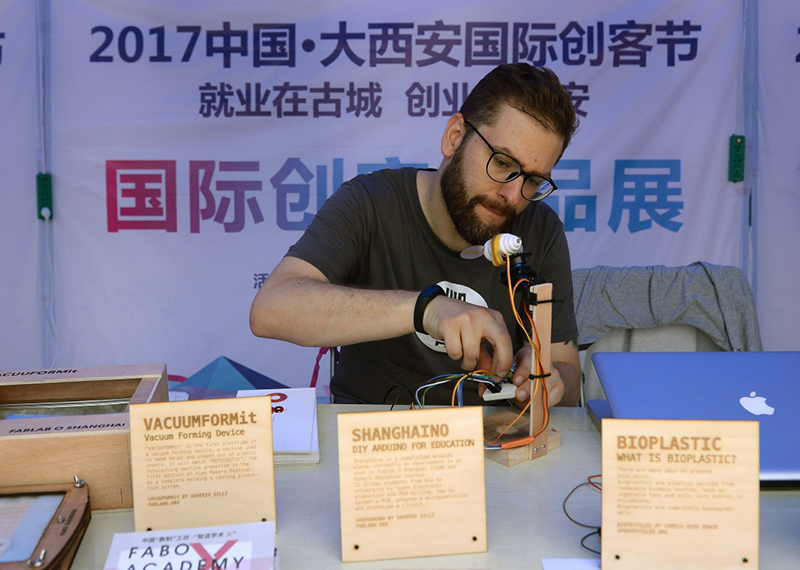 当日,2017中国·大西安国际创客节在西安交通大学开幕,本届创客节将举行国际创客峰会、国际国内创客作品展、科技互动体验、创意集市等多项活动。来自国内外的40余个创客团队将与西安的创客一起分享创新成果、交流创业经验。